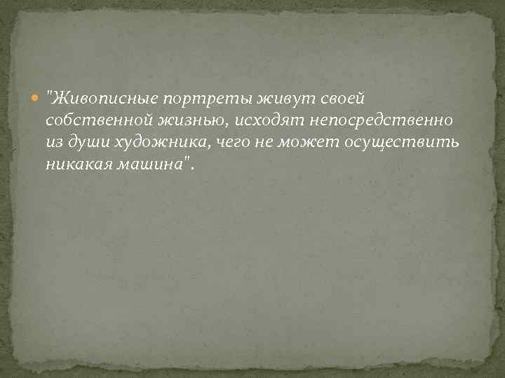 "Живописные портреты живут своей собственной жизнью, исходят непосредственно из души художника, чего не может осуществить никакая машина".