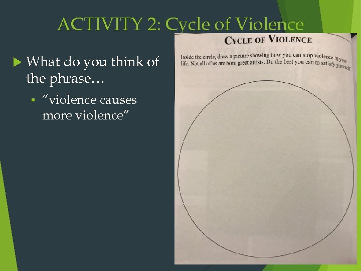 ACTIVITY 2: Cycle of Violence What do you think of the phrase… § “violence causes more violence”