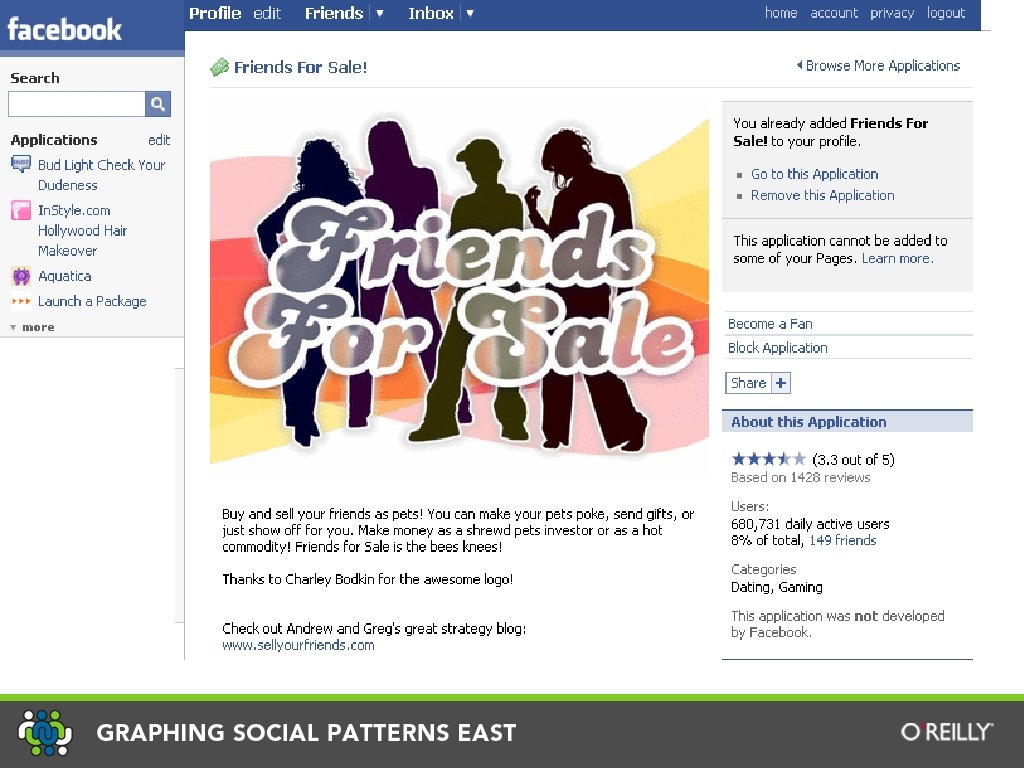 Friends For Sale § Buy Friends, Make them your pets § Hot-or-Not with a market economy. True Viral § Nearly 600, 000 active users. § 300 million page views a month. § 300% monthly growth rate § 2. 1 million unique visitors in the past month