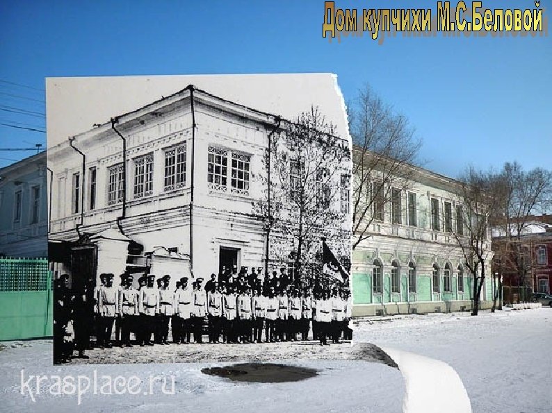 Первый жилой каменный дом в Минусинске появился в 1854 г. Он был построен местной купчихой М. С. Беловой так, что его главный фасад выходил на площадь, где в свое время стояли гостиные ряды, лавки с балаганами, кладовые казначейства и несколько жилых домов. В настоящее время в этом здании располагается Минусинский медицинский техникум.