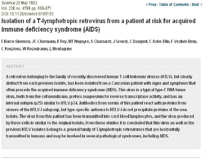 SINDROME DE INMUNODEFICIENCIA HUMANA ADQUIRIDA (SIDA) Es el conjunto de signos y síntomas de inmunodeficiencia secundaria que caracterizan al estadio final de la infección por el virus del HIV: n n n INFECCIONES OPORTUNISTAS REACTIVACIÓN DE INFECCIONES LATENTES NEOPLASIAS Disminución del recuento de LT CD 4+ en sangre periférica Aumento de la viremia; con progresión hacia la muerte.