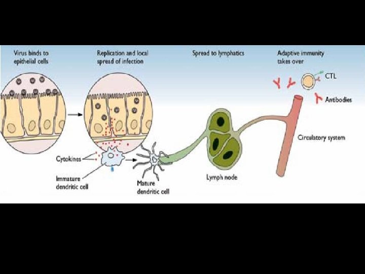 FISIOPATOGENIA n n 1. 2. 3. El virus infecta a los LTh (CXCR 4), macrófagos (CCR 5) y células presentadoras de antígeno (CD 4) La infección puede dividirse en tres etapas: Primoinfección Período asintomático Período sintomático
