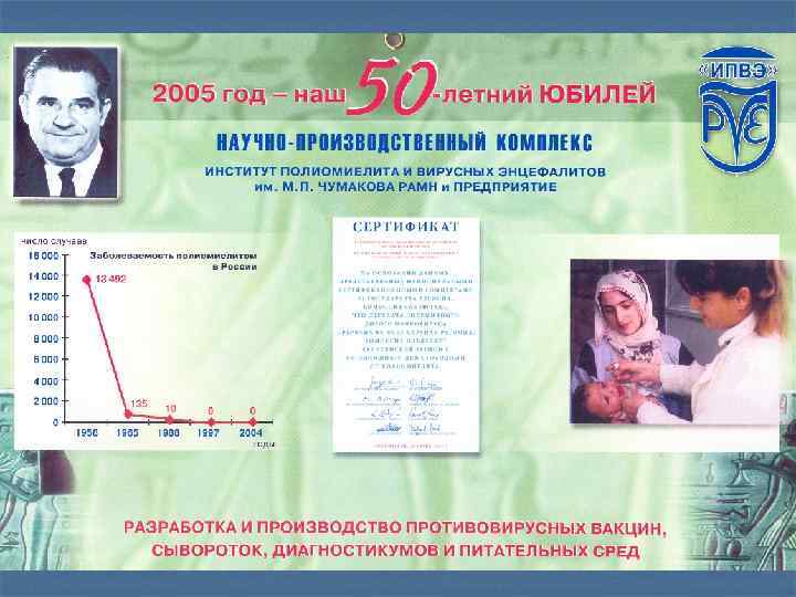 Эпидемия полиомиелита в СССР n В СССР рост заболеваемости начался с 1953 года и пик пришелся на 1958 г. когда число заболевших достигло 13, 5 тыс. человек. Всего за время эпидемии 1953 -61 г. г. в СССР полиомиелитом переболело примерно 100 тыс. детей.