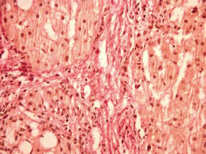 Методика обработки пункционных гепатобиопсий 4) Окраска: 4. 1. Гематоксилином – эозином. 4. 2. Пикрофуксином по Ван-Гизон. 4. 3. Орсеином по Shikata для выявления HBS-антигена (гепатит-В) комплексов белка и меди. 4. 4. PAS-реакция (ШИК-реакция) по Мак-Манусу.
