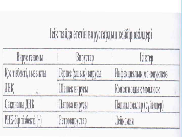 Вирустар гендері Кейбір вирустардың ісік пайда ететіндігі дәлелденген және олардың бәріне ортақ мәндетті ерекшелік, вирус геномының жасушасының бір хромосомасына жағанды болып табылады.