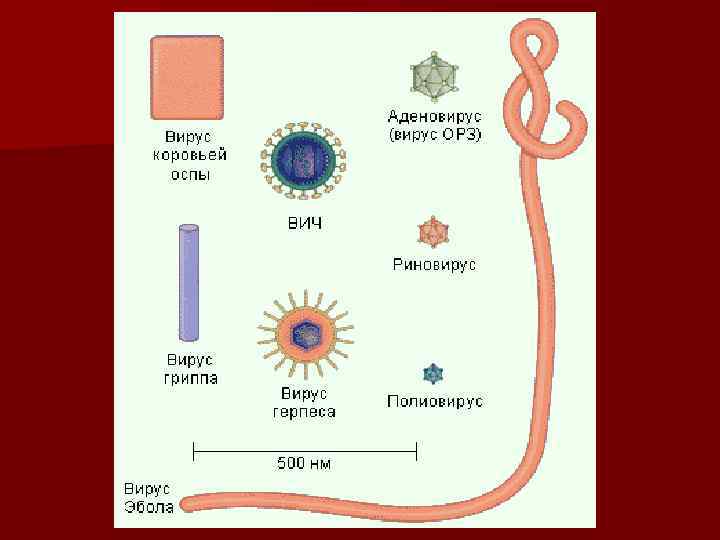 Заболевания, вызываемые вирусами n Хорошо изучен вирус табачной мозаики, имеющий палочковидную форму и представляющий собой полый цилиндр. Стенка цилиндра образована молекулами белка, а в его полости расположена спираль РНК. Белковая оболочка защищает нуклеиновую кислоту от неблагоприятных условий внешней среды, а также препятствует проникновению ферментов клеток к РНК и ее расщеплению.