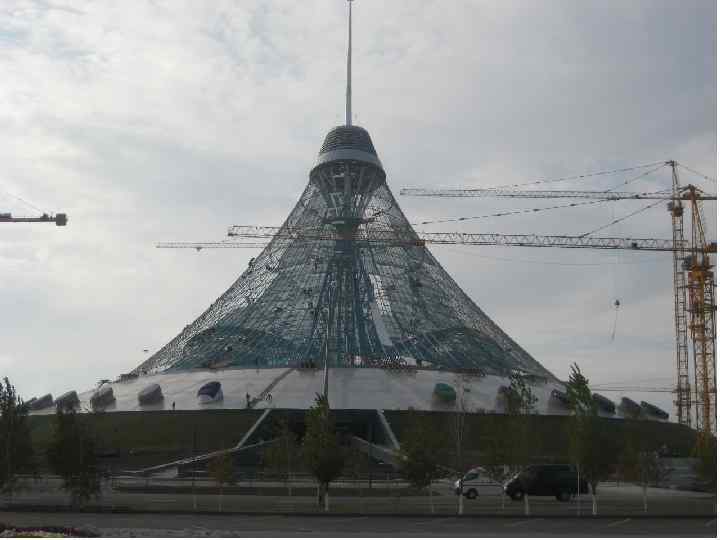 Торгівельний центр «Хан-Шатир» , м. Астана, на високо піднятій центральній опорі закріплена сітка з металевих вант, які у нижній частині закріплені до залізобетонного опорного кільця. Покрівля з світлопрозорої полімерної тканини