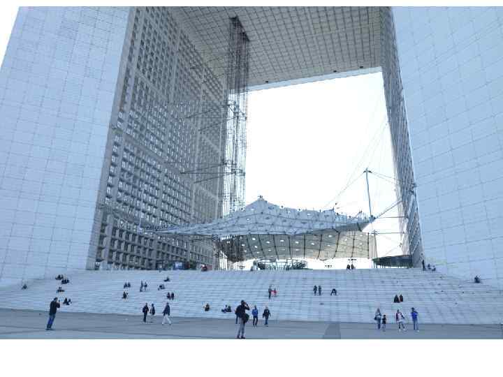Велика арка Дефанс, Париж, 1989 р. , арх. Йохан Отто фон Спрекельсон, Поль Андре, куб із розмірами 108 х112 м, висотою 110 м, всередині підвішене тентове висяче покриття «Хмара»