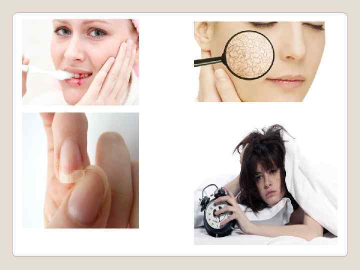 Дефицит витамина С При выраженном дефиците витамина С наблюдаются следующие симптомы: • Ослабленный иммунитет • Кровоточивость дёсен • Ломкость ногтей • Сухость и бледность кожи • Замедление регенерации тканей • Тусклость и выпадение волос • Вялость и быстрая утомляемость • Ослабление тонуса мышц • Боли в конечностях и крестце • Плохое состояние зубов (расшатывание, выпадение) • Повышенная хрупкость кровеносных сосудов Современные ученые оспаривают тот факт, что недостаточное количество витамина может привести к развитию всех вышеуказанных симптомов – негативные проявления наблюдаются лишь в случае длительного и хронического отсутствия аскорбиновой кислоты (в этом случае развивается цинга).