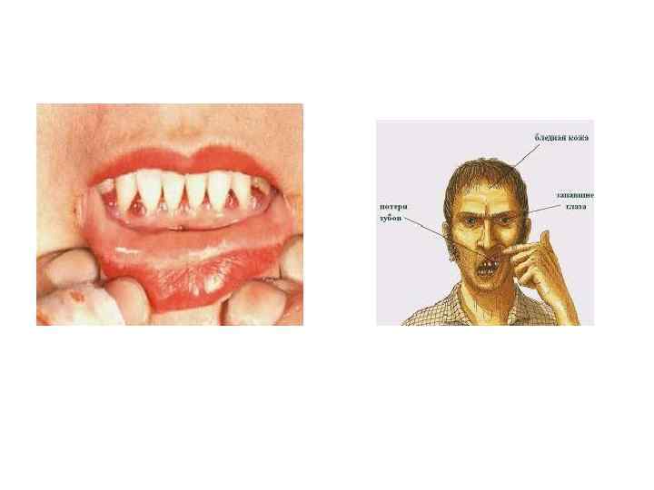 Гиповитаминоз цинга: -кровоизлияния -расшатывание зубов, кровоточивость дёсен (недостаточность коллагена) -анемия (нет ТГФК) -боли в сердце, отёки ног, одышка, слабость -похтеря веса