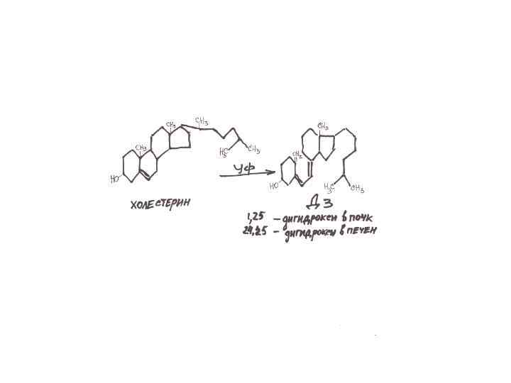 D 3 холекальциферол Возникает из холестерина, проходит стадию провитамина дегидрохолестерина и превращается в коже в активную форму под действием ультрафиолета. Завершается переход гидроксилированием в печени, почках и других тканях.