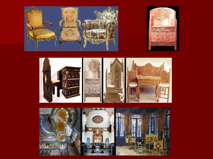 n В Византии (с IV по XV в. ) полностью сохранился римский характер мебели, но чрезмерное увлечение роскошью, перенасыщение предметов обстановки украшениями уничтожило изящество форм мебели. При ее изготовлении делался упор на ценные материалы - золото, слоновую кость, драгоценные камни, что способствовало полному уничтожению византийской мебели. До наших дней не дошло почти никаких ее образцов, сохранились только изображения мебели на миниатюрах. В византийских жилищах были очень распространены ткани. Из узорных шелковых тканей делали занавесы, покрывала, скатерти. Пользовались византийцы и мягкой мебелью низкие диваны, тахты, заимствованной из Персии и других восточных стран.