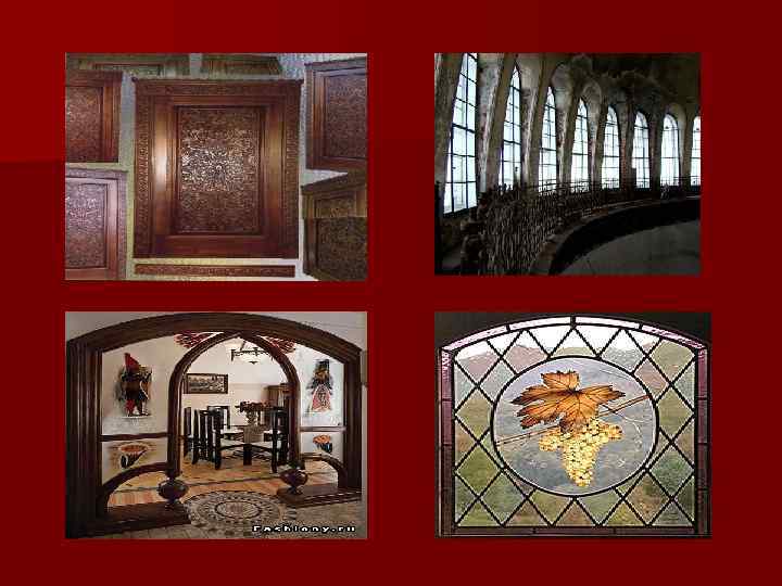 Характерные конструкции: Купол, полукружные арки, диагональные экседры, устои, арки на колоннах и т. п. n Характерные окна: Арочные вытянутые вертикально n Характерные двери: Резные массивные n