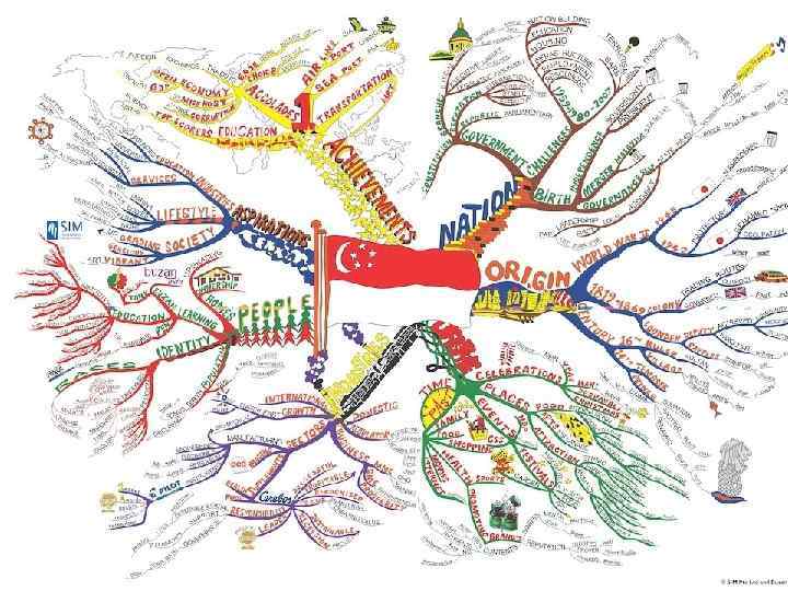 Самая большая интеллект- карта 2007 г, 1600 школьников из 15 -ти сингапурских школ нарисовали самую большую интеллект-карту в мире - размером с два бадминтонных корта, которую вывесили на здании Сингапурского Института Менеджемента: