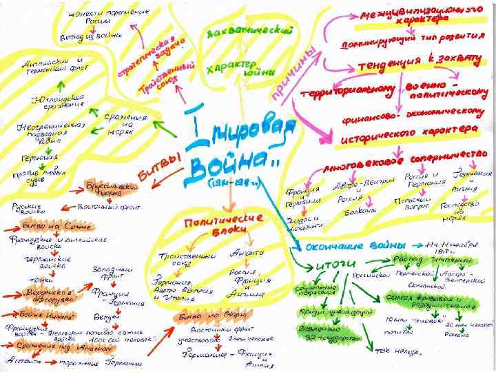 Законы построения интеллект-карт Законы содержания, оформления и структуры При необходимости рисуем стрелки, соединяющие разные понятия на разных ветках.