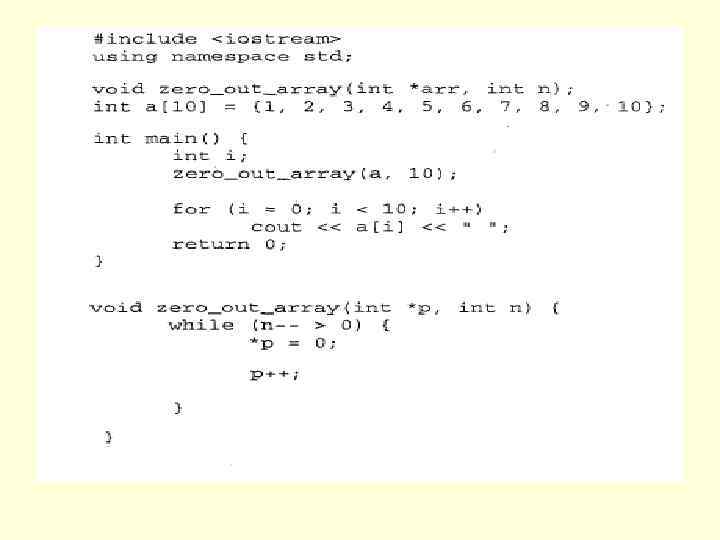 2. Присвоєння вказівнику адреси області пам’яті у явному вигляді: char* vp = (char *)0 x. B 8000000; 3. Присвоєння порожнього значення: int* vk = NULL; int* err = 0; 4. Виділення ділянки динамічної пам’яті і присвоєння її адреси вказівнику: int* n = new int; int* q = new int (10); int* m = new int [10];