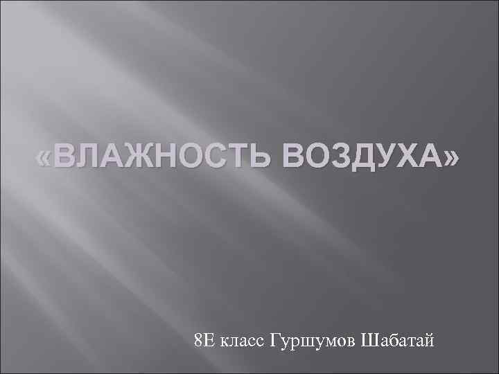 «ВЛАЖНОСТЬ ВОЗДУХА» 8 Е класс Гуршумов Шабатай
