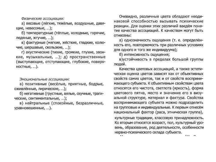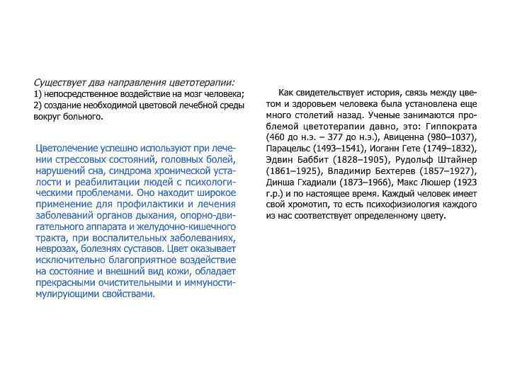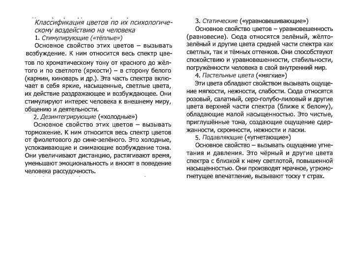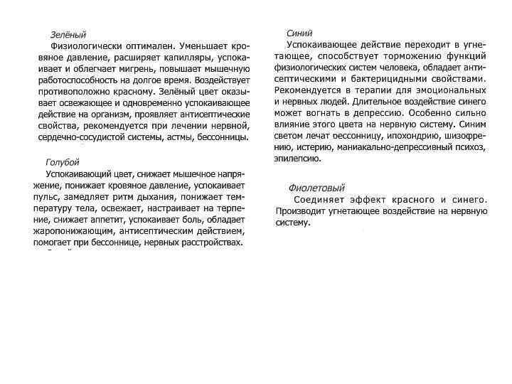 Влияние цвета на человека. 1. 2. 3. 4. Влияние цвета на физиологию человека Психологическое воздействие цвета Цвет и темперамент Цветотерапия Действие цвета на человека замечено давно: цвет влияет на его физиологические системы, активизируя или подавляя их деятельность, цвет создаёт то или иное настроение, внушает определённые мысли и чувства. Воздействие цвета можно разделить на физиологическое, психологическое и эстетическое; этими факторами обусловлены цветовые ассоциации, семантика и символика цвета, а также использование цвета в искусстве.
