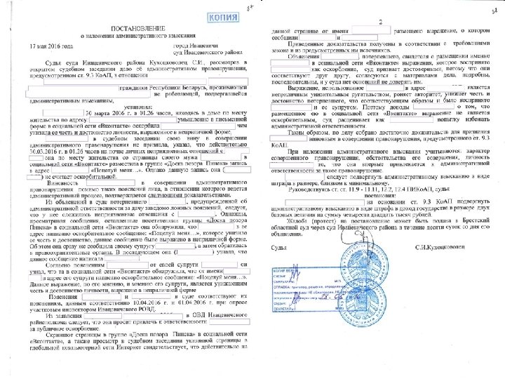 Оскорбления в социальных сетях Согласно ст. 9. 3 Ко. АП РБ под оскорблением понимается умышленное унижение чести и достоинства личности, выраженное в неприличной форме. Предусмотрена ответственность — наложение штрафа в размере от 4 до 20 базовых величин.