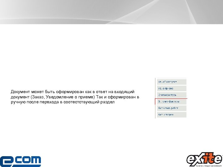 Документ может быть сформирован как в ответ на входящий документ (Заказ, Уведомление о приеме) Так и сформирован в ручную после перехода в соотестствующий раздел