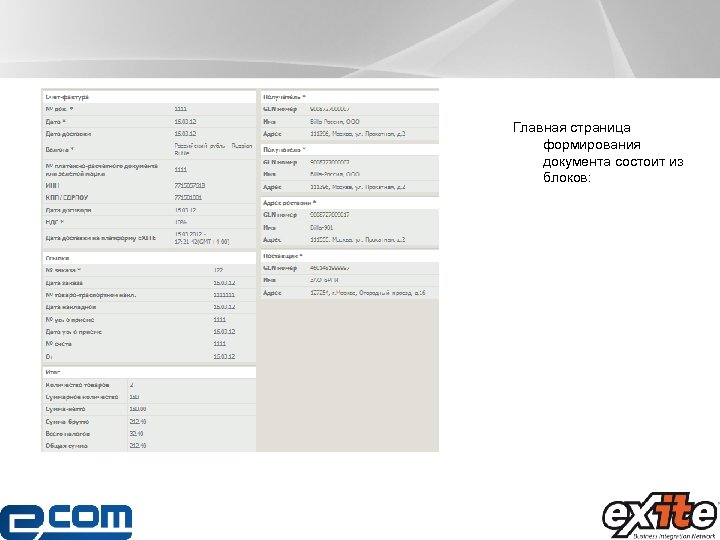 Главная страница формирования документа состоит из блоков:
