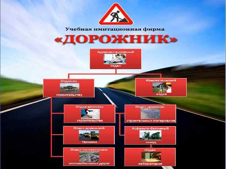 Цель проекта: разработать и внедрить модель функционирования и развития учебной имитационной фирмы «Дорожник» в систему подготовки специалистов по строительству и эксплуатации автомобильных дорог