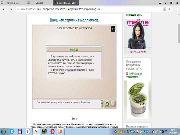 Внешнее строение моллюсков. Работу выполнил Ученик 7 Б класса Кузнецов Артемий