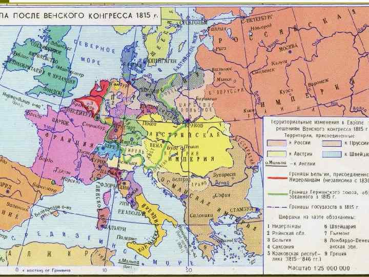p 18(30) марта 1814 г. – капитуляция Парижа Бонапарт отрекся от престола и был сослан на о. Эльбу. Во Франции восстановлена власть династии Бурбонов. сентябрь 1814 – июль 1815 Венский конгресс - Цели: послевоенное устройство Европы; установление ведущей роли государств-победителей; «восстановление» довоенных границ (1792 г. ); вознаграждение победит восстановление прежних династий в европейских государствах; борьба с революционным движением