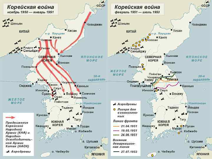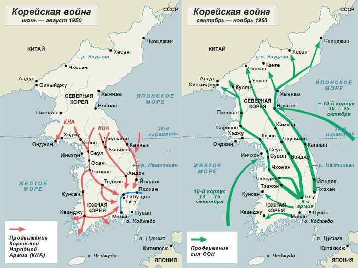 1950 – 1953 гг. Разделительная линия по 58 параллели. Корейская война.