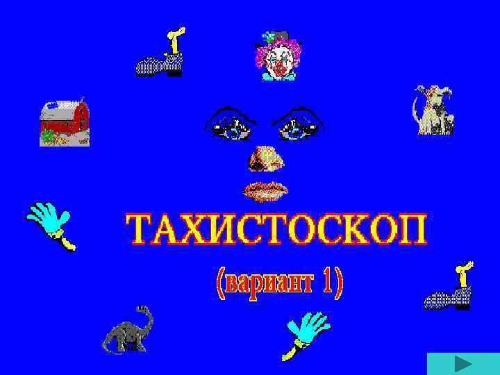 Внимательно смотрите в центр экрана, где на очень короткое время вам будет предъявлен объект (буквы, а затем слова). Воспроизведите все, что увидите, желательно в том порядке, в каком это предъявлено. Для прокрутки используйте клавишу далее в правом нижнем углу экрана или любую клавишу