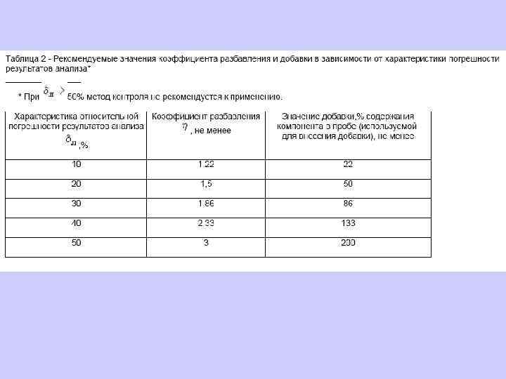 РМГ 61— 2003 ПОКАЗАТЕЛИ ТОЧНОСТИ, ПРАВИЛЬНОСТИ, ПРЕЦИЗИОННОСТИ МЕТОДИК КОЛИЧЕСТВЕННОГО ХИМИЧЕСКОГО АНАЛИЗА. Методы оценки Приложение И (рекомендуемое) Добавка к пробе (разбавленной пробе) и кратность разбавления в зависимости от СКО воспроизводимости