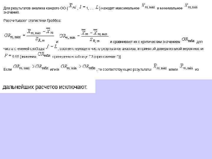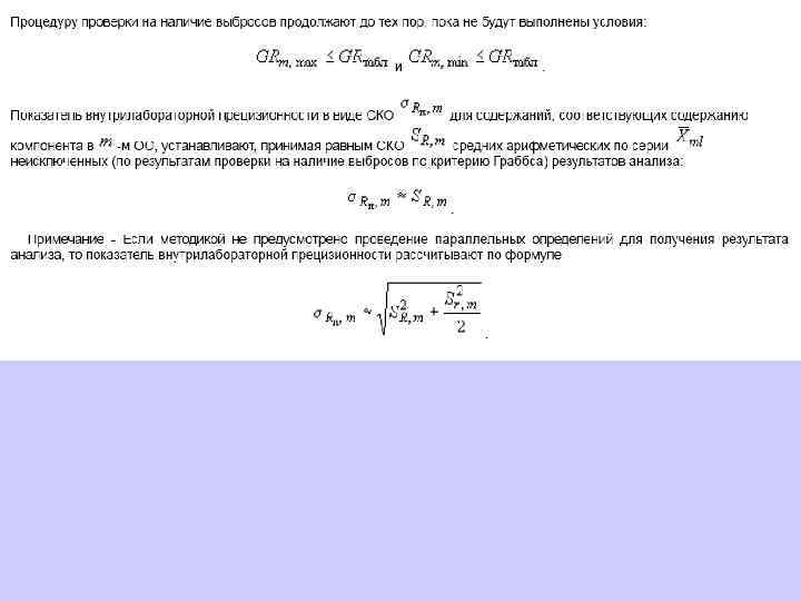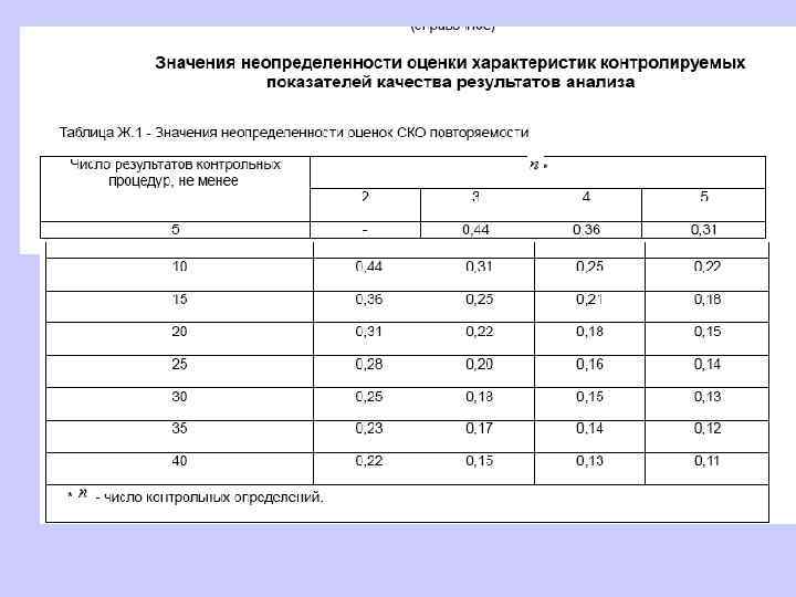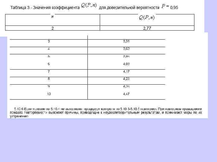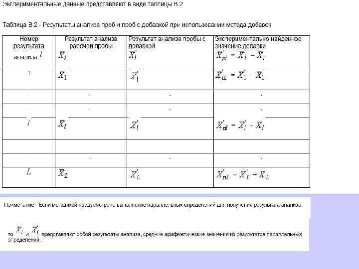 Если методикой анализа не предусмотрено проведение параллельных определений, то для целей эксперимента в условиях повторяемости получают два результата единичного анализа ( n = 2). Если после обработки и исключения резко выпадающих результатов анализа недостаточно данных для достоверной оценки показателей качества, дополнительно получают необходимое число результатов анализа