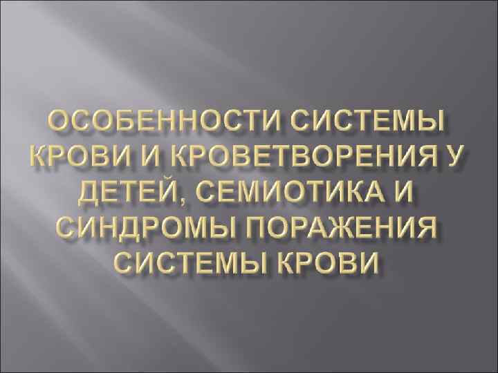 Особенности системы крови и кроветворения у детей, семиотика и синдромы поражения системы крови (1).ppt