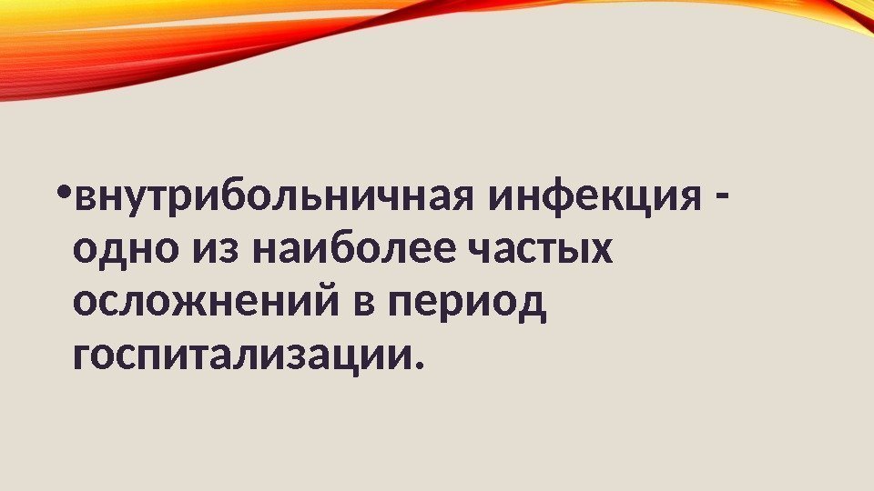 • внутрибольничная инфекция — одно из наиболее частых осложнений в период госпитализации.