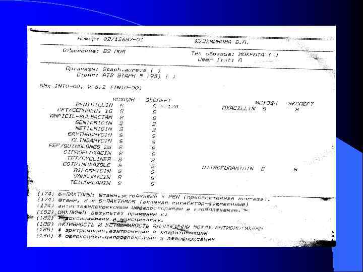 Профилактика и лечение l l l l l - это наиболее сложные вопросы проблемы ВБИ Для адекватной антимикробной терапии необходимо определение чувствительности культур к антибиотикам (прежде всего - к бета - лактамовым) В тяжелых и затяжных случаях применяют донорский антистафилококковый иммуноглобулин Определенный эффект может оказать фаготерапия Для создания антитоксического иммунитета применяют стафилококковый анатоксин Аутовакцину - при хроническом фурункулёзе