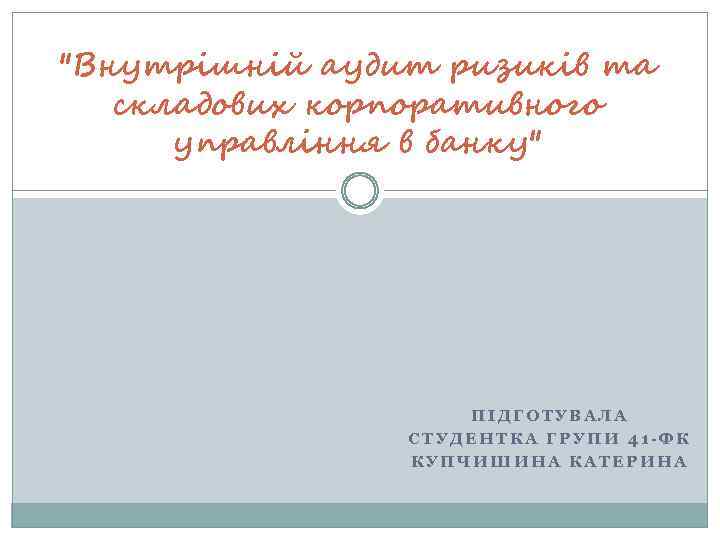 "Внутрішній аудит ризиків та складових корпоративного управління в банку" ПІДГОТУВАЛА СТУДЕНТКА ГРУПИ 41 -ФК КУПЧИШИНА КАТЕРИНА