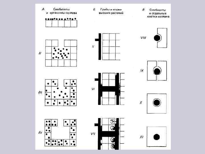 Формы мутуализма По способу взаимодействия партнеров: • Мутуализм, основанный на поведенческих взаимодействиях • Мутуализм при взаимодействии животных и растений • Мутуализм, основанный на симбиозе – симбионты физически отделены от хозяина – симбионты обитают на поверхности или внутри тела хозяина – симбионты обитают внутри клеток хозяина Симбиотические водоросли – зоохлореллы