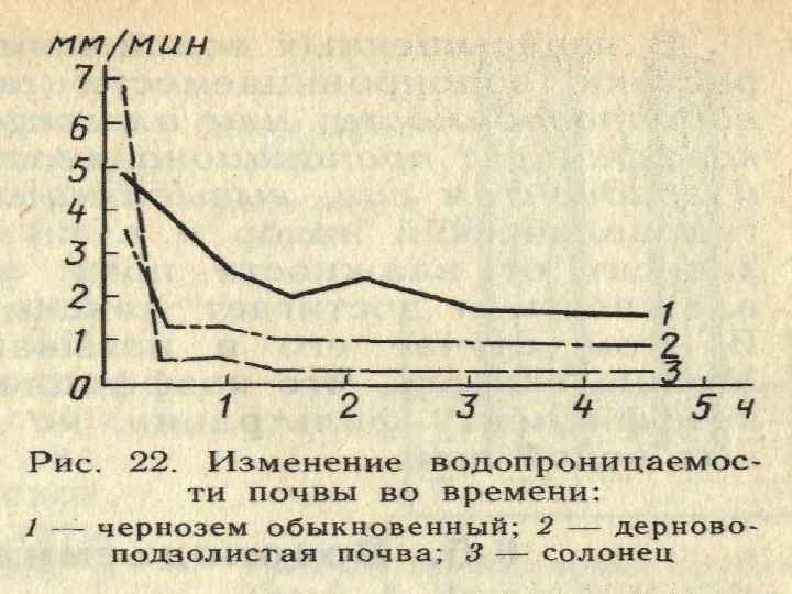 • Сильно снижает водопроницаемость почв наличие набухающих коллоидов, насыщенных Na+ или Mg 2+. • Почвы оструктуренные, рыхлые характеризуются высокими показателями водопроницаемости. • Водопроницаемость почв измеряется объемом воды, проходящей через единицу площади поперечного сечения в единицу времени.
