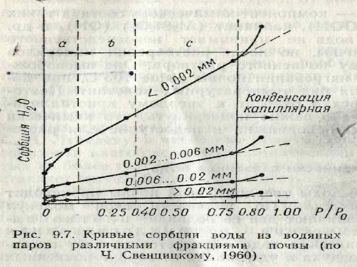 • • Наряду с этим, вода в почве обепечивает процессы воспроизводство её плодородия. • Вода в почве находится между частицами твёрдой фазы (почвенными агрегатами)в двух видах промежутков: - некапиллярные; ………. - капиллярные. и трёх агрегатных состояниях: - твёрдом; - жидком; - парообразном. ……… ……… ……… ……. .