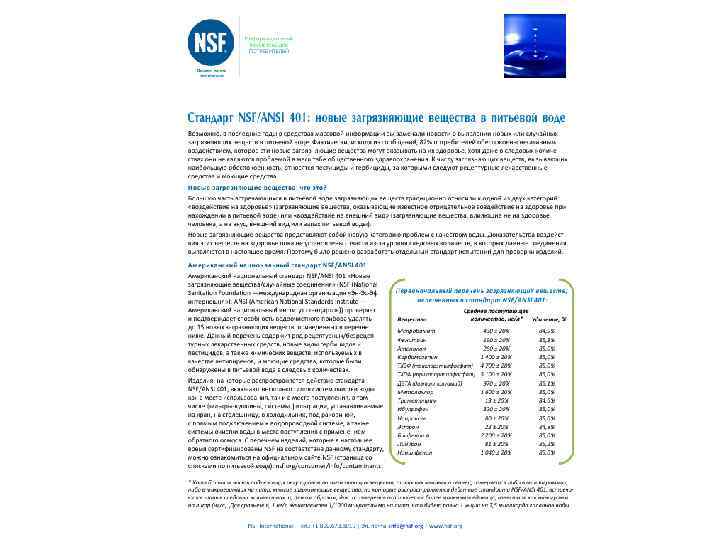ДОКАЗАНО Почему NSF? Как потребитель может понять, что система очистки воды, которую он покупает, действительно работает? Вода втекает и вытекает, но что происходит внутри? Большинство загрязнителей не имеют ни вкуса, ни запаха. Как можно понять, что они удалены? Говорят, что очень многие продукты эффективны. Но где доказательства?