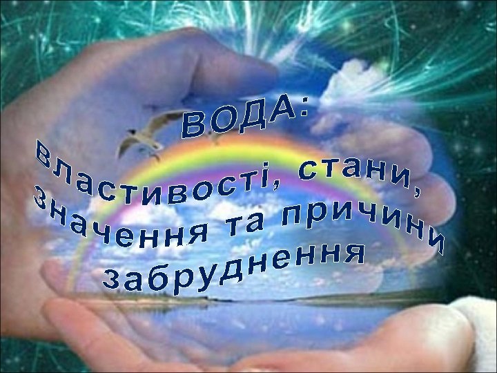 Вода - прозора рідина без запаху, смаку і кольору - оксид водню. Молекула води складається з одного атома Оксигену і двох атомів Гідрогену (Н 2 O).