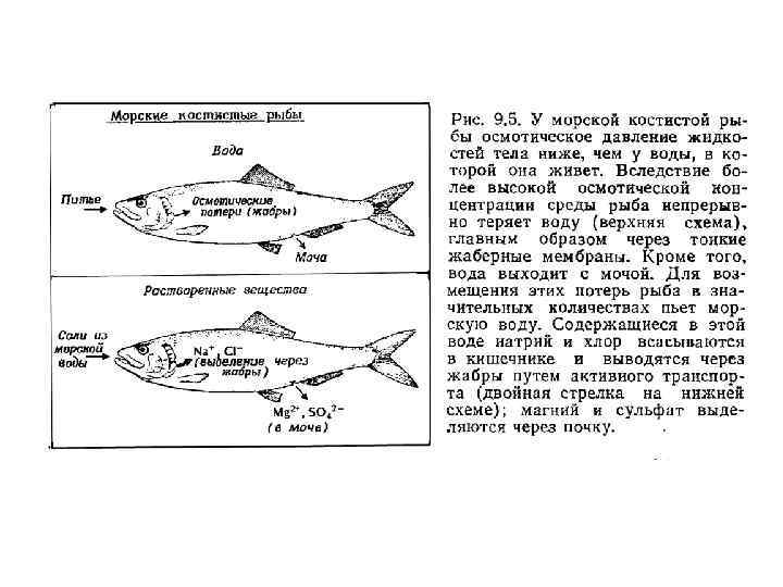 • Пресноводные животные - гиперосмотичные %С жидкостей тела > %С среды ток воды • Морские костистые рыбы – гипоосмотичные %С жидкостей тела < %С среды ток воды