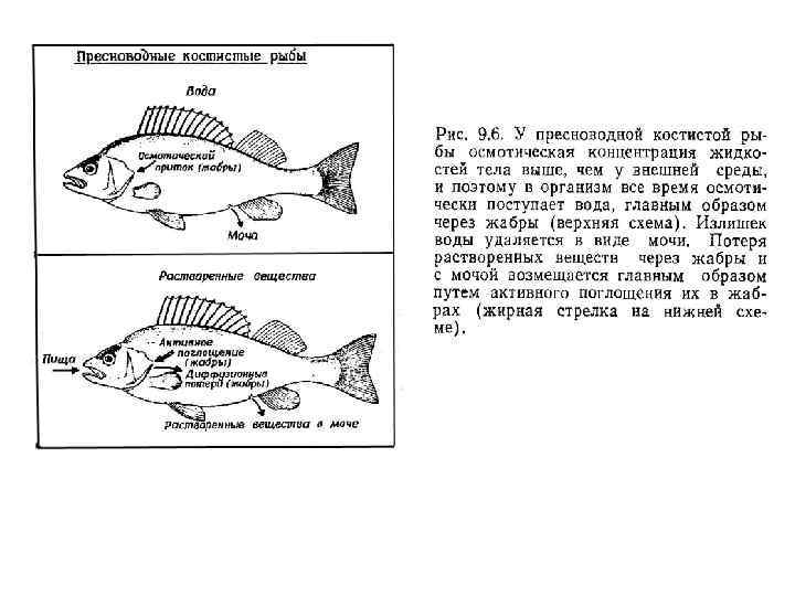 Рыба помещена в камеру, разделенную пополам резиновой перепонкой. Кожа не участвует в активном поглощении ионов: оно происходит только в жабрах (Krogh, 1937).