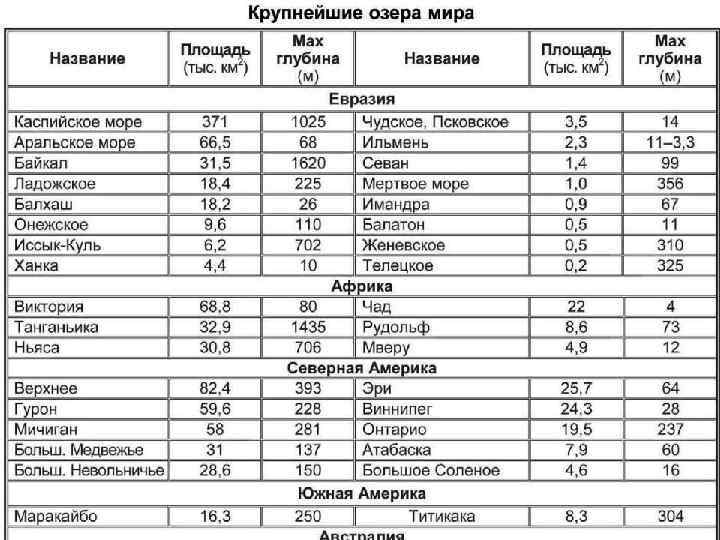 Крупнейшие озера России
