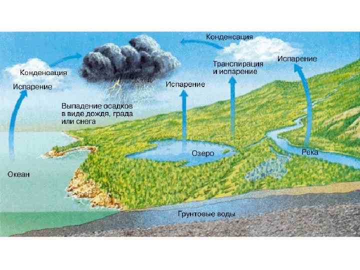 САМООЧИЩЕНИЕ ВОДОЕМОВ • Связано с круговоротом воды в природе • Обеспечивается совокупной деятельностью организмов, населяющих водоемы • Физические факторы: разбавление, растворение, перемешивание поступающих загрязнений, оседание нерастворимых частиц в процессе отстаивания • Обеззараживание воды под воздействием УФ излучения Солнца • Фильтрация планктоном