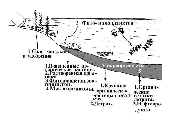 ЭВТРОФИКАЦИЯ ВОДОЕМОВ • Трофность – способность водоемов фотосинтезировать органическое вещество как основу кормовой базы для водных организмов • Эвтрофикация – повышение биологической продуктивности водоемов в результате накопления в воде биогенных веществ под воздействием естественных и главным образом антропогенных факторов. Сопровождается массовым развитием микроскопических планктонных водорослей – фитопланктона, и высшей водной растительности