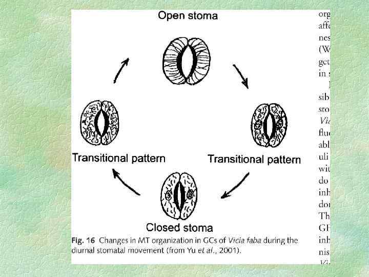 Механизм закрывания устьиц под влиянием АБК (Schroeder, 2001). Закрывание устьиц индуцируется при экзогенной обработке листьев АБК. При обезвоживании и снижении водного потенциала растений в первую очередь регистрируется резкое повышение уровня АБК и уже после этого закрывание устьиц.
