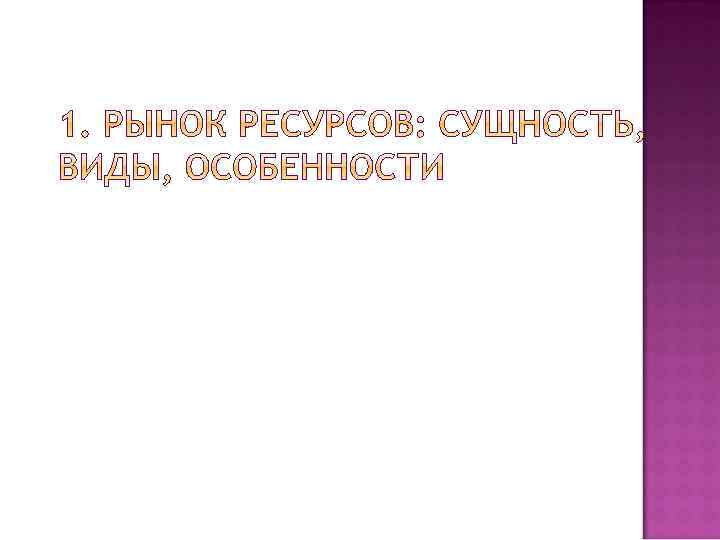 1. 2. 3. 4. Рынок ресурсов: сущность, виды, особенности Рынок труда Рынок капитала Рынок земли