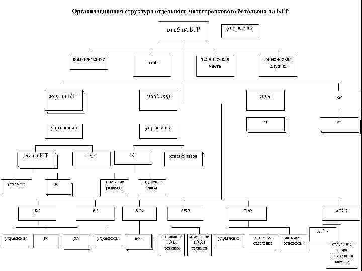 Подразделения специальных войск Разведывательный батальон, рота, взвод, Ремонтно восстановительный батальон Инженерно саперный батальон, рота, взвод, отделение Инженерно штурмовая рота, взвод, Переправочно десантная рота Понтонная рота, взвод Взвод, отделение гусеничных плавающих транспортеров Взвод, отделение гусеничных самоходных паромов Отделение мостоукладчиков (танковых) Рота, взвод радиационной, химической и биологической защиты Взвод, отделение радиационной и химической разведки Извод, отделение специальной обработки Огнеметная рота, взвод, отделение Рота, взвод, отделение связи Ремонтная рота, взвод Взвод, отделение технического обслуживания рб, рр, рв, ро отделение рвб исб, иср, исв, исо ишр, ишв, ишо отделение пдеср понр, понв вгпт, огпт вгсп, огсп омту р. РХБЗ, в. РХБЗ врхр, орхр всо, осо ор, ов, оо рс, вс, ос ремр, ремв вто, ото