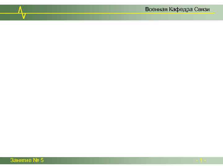 Военная Кафедра Связи Занятие № 5 - 1 -